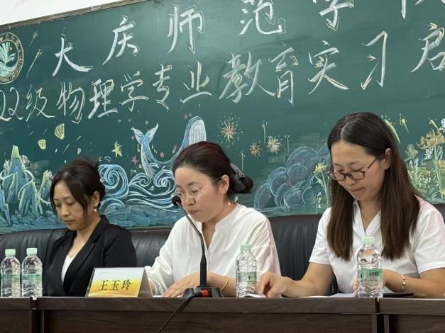 会上,王玉玲副院长首先代表学院向即将奔赴实习一线的同学们表示祝贺。她指出,本次实习是师范生培养的关键环节,既是对三年专业学习的综合检阅,也是迈向教师岗位的重要一步。王玉玲院长勉励同学们“以教育家精神为引领,做有温度、有深度、有广度的物理教师,完整落实学物理、用物理、讲物理”,并围绕师德师风、角色转换以及育人能力等提出三点要求:一是要团结协作,展示大庆师范学院学子良好风貌;二是要主动学习,在实习实践中提升教学与教研能力;三是要关爱学生,用科学精神点燃青少年求知之火。本次教育实习能帮助大家明确职业方向,提前适应教师角色,积累教学经验,提升就业竞争力。为基础教育输送高质量师资,激发学生对科学的兴趣与探索精神,培养更多具有科学素养和创新思维的人才。