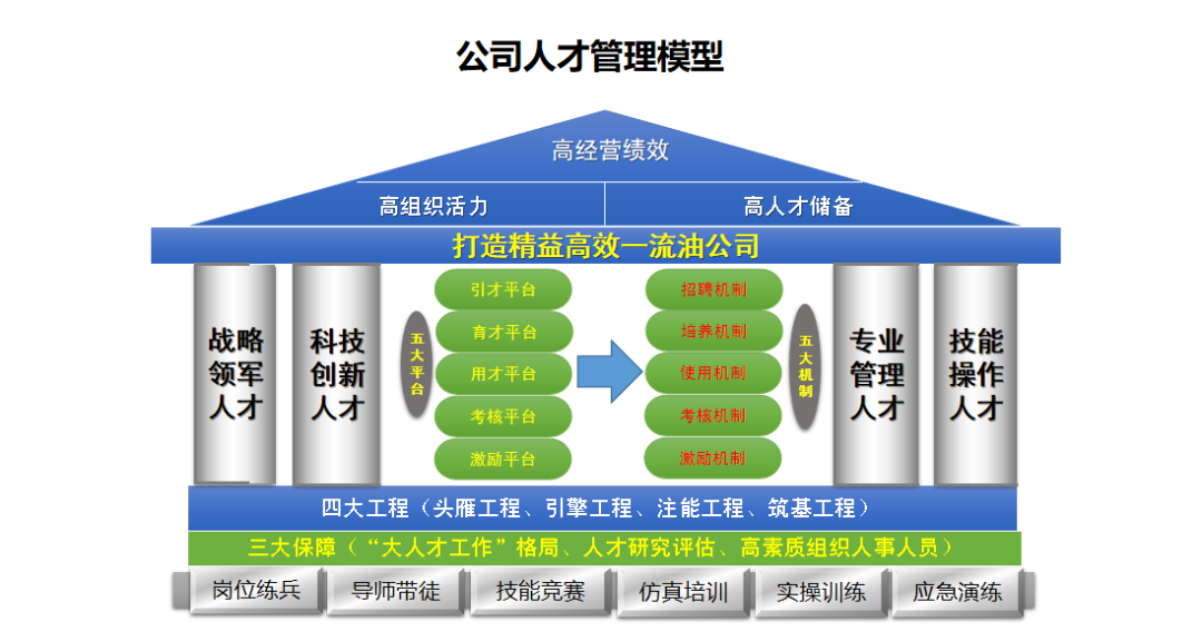 公司高度重视人才工作,构建了“实施四大工程、建强四大方阵、构建五大平台、完善五大机制和落实三大保障”的人才发展工作模型。