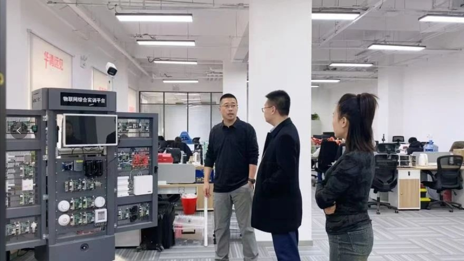 刘永皓院长在该公司翟总经理和史经理的引领下,参观了公司的办公环境和教学设施。对方详细介绍了企业基本情况、业务范围以及学生职业发展等问题,并表达了围绕校企协同育人模式构建校企融合发展共同体的期望,同时就深化校企合作模式与路径、推进人才培养质量提升、实现多方共赢等话题展开交流。